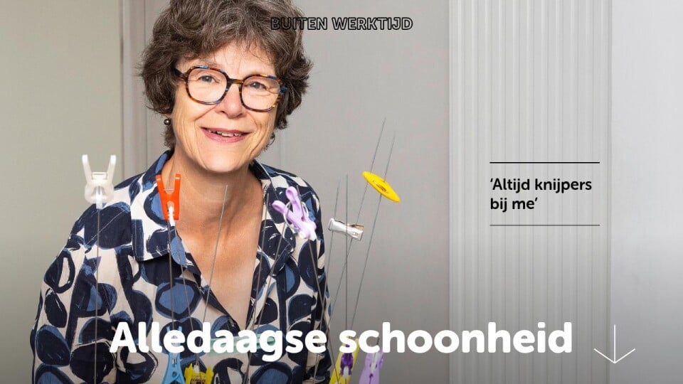 Mijn man was beeldend kunstenaar, hij keek anders naar de wereld. Het gaat om iets alledaags, maar daarin schuilt zoveel variatie in oplossingen. Wim T. Schippers zei: ‘Als je goed om je heen kijkt, zie je dat alles gekleurd is.’ Dat is bij knijpers sowieso waar, maar er is nog veel meer te zien als je een beetje oplet. Daar zit voor mij de schoonheid.” •