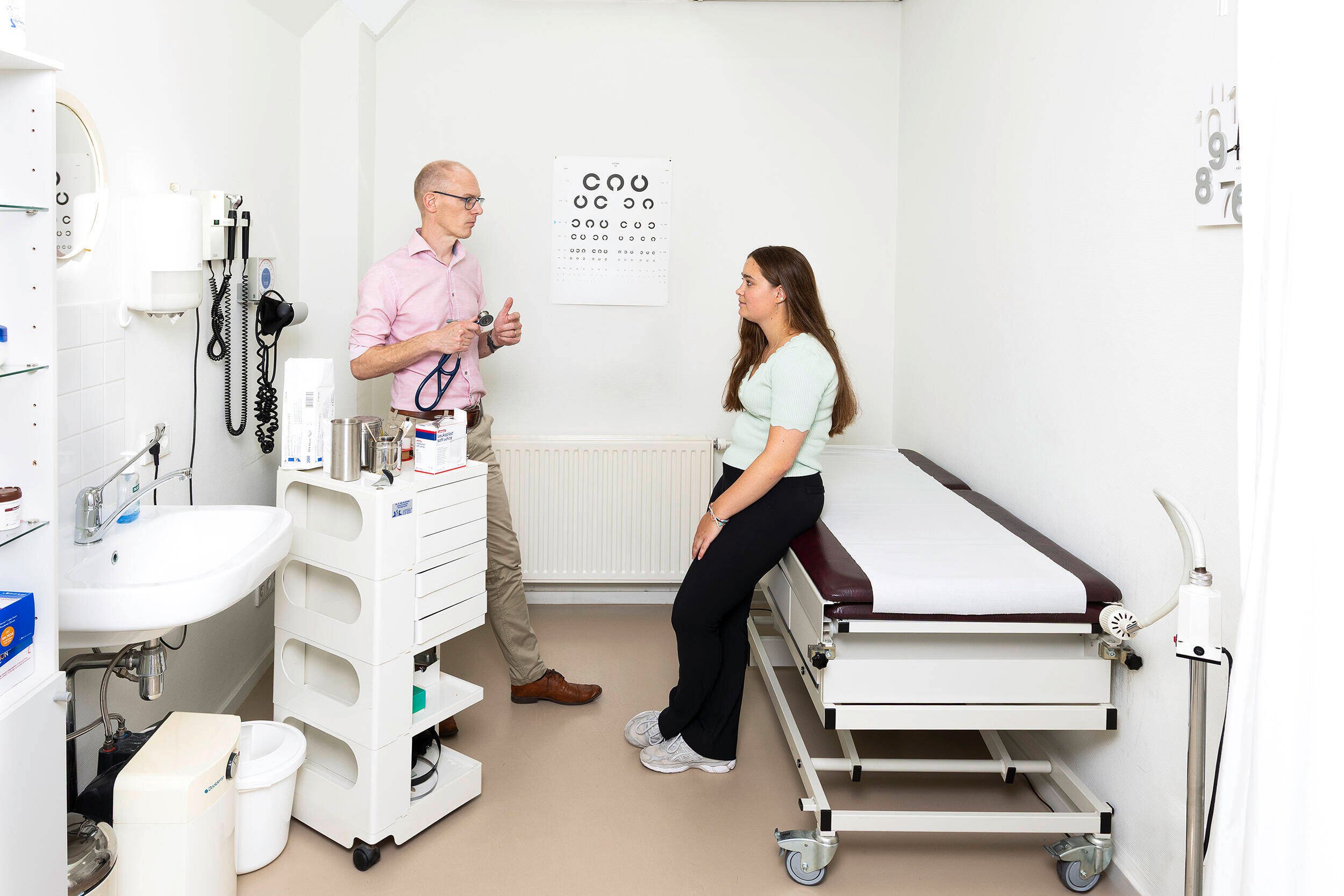 Punt hoopt dat de studenten voortaan van het begin af meer verantwoordelijkheid krijgen. “Je moet in een zo’n authentiek mogelijke situatie leren klinisch redeneren. Dat moet natuurlijk wel in een gecontroleerde en veilige setting gebeuren, onder supervisie van artsen. Maar door het ervaren van verantwoordelijkheid snap je pas echt de urgentie van wat je doet. Studenten kunnen veel ziektebeelden noemen die lage rugklachten geven. Maar het is veel moeilijker om bij één patiënt de meest waarschijnlijke oorzaak te diagnosticeren. Door het gebruik van kennis, het stellen van de juiste vragen en later ook lichamelijk en aanvullend onderzoek ga je steeds meer trechteren van breed naar klein. Wanneer je dat goed kan, kun je in de meest gevallen de juiste diagnose stellen.” •