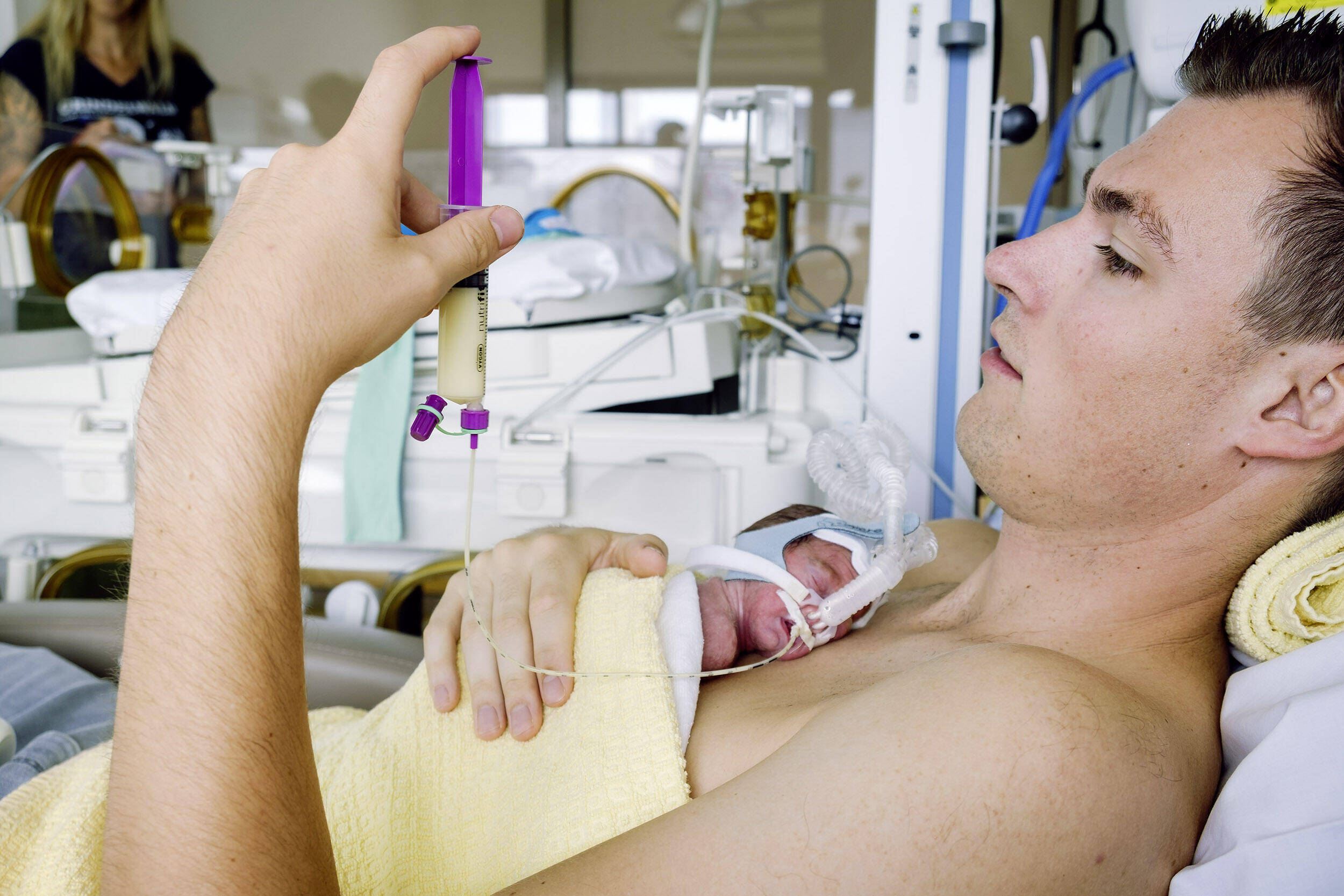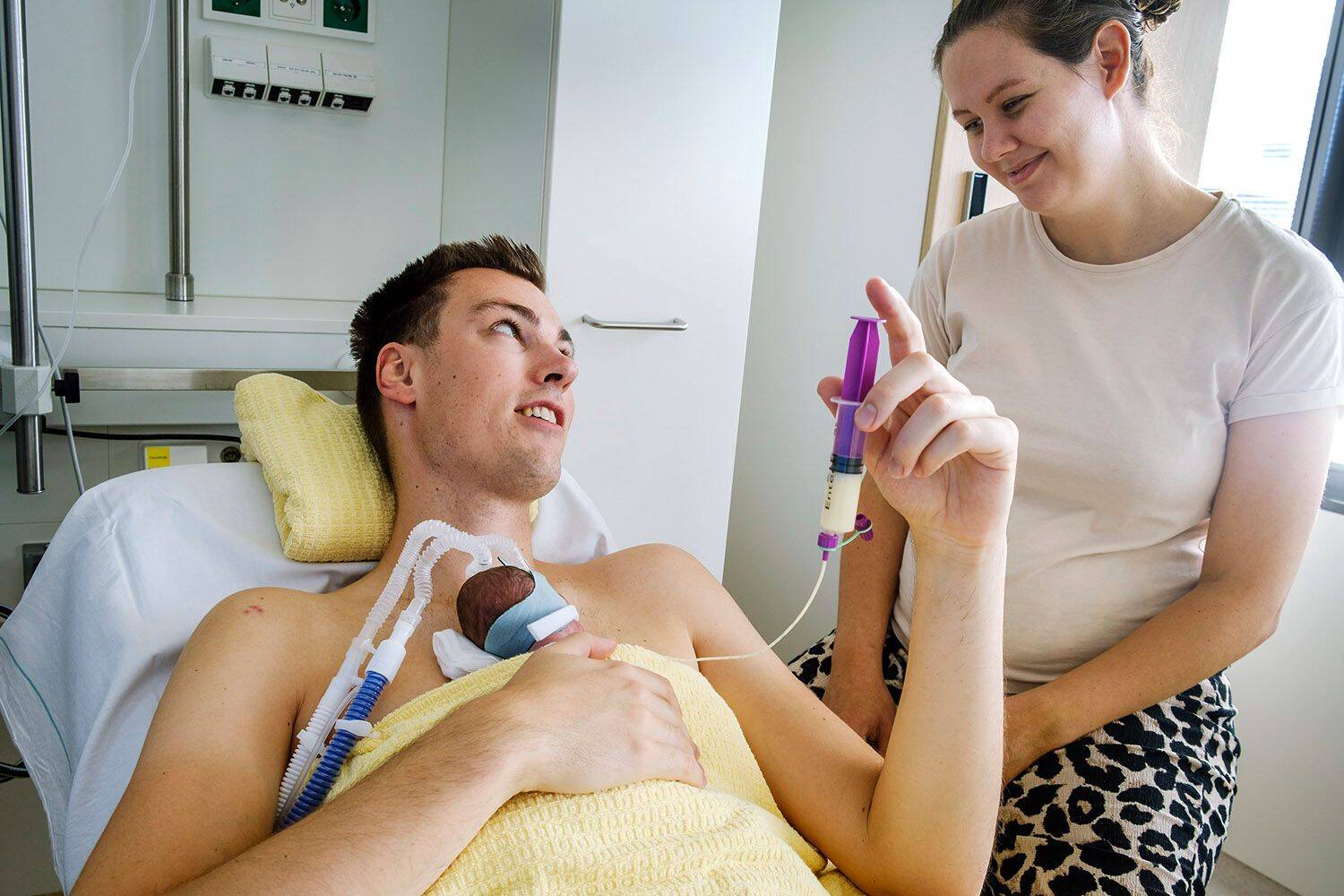 De melk die door de sonde druppelt, is nu volledig gekolfde melk van de moeder. De eerste dagen kon dat vanwege medische redenen nog niet en kreeg Feline donormelk van de Moedermelkbank. “Het is ontzettend fijn dat dat kan, want donormelk is beter voor prematuren dan kunstvoeding”, vertelt papa Martijn. “We willen wat het beste is voor Feline’s gezondheid. Gelukkig kan Lisa nu voldoende kolven, maar het is mooi dat de beschikbaarheid van donormelk de extra stress van voldoende kolven in het begin kan verminderen. Naast alle stress die er al is als je kind op de NICU ligt. En het is heel fijn dat de donormelk goed wordt gescreend, zodat het veilig gebruikt kan worden.”