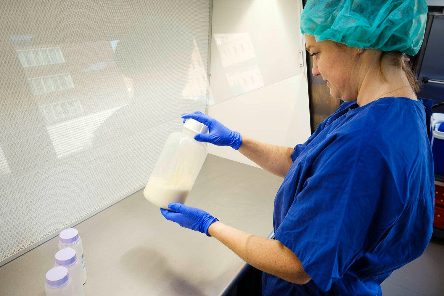 Na het pasteuriseren wordt de melk in speciale flesjes gedaan van verschillende formaten. Vervolgens weer ingevroren en klaargezet om per koerier naar de verschillende NICU’s door het hele land vervoerd te worden. Schoonderwoerd: “Ik moet dus alles in de gaten houden: zijn er nog voldoende donoren, maar ook niet te veel? Want de melk mag maximaal drie maanden ingevroren blijven voor pasteuriseren. Wanneer en hoeveel moet er gepasteuriseerd worden en welke NICU’s hebben hoeveel voorraad nodig? Het is een logistiek proces, maar erg leuk om te doen. Het is afwisselend en geeft mij een voldaan gevoel omdat dit zoveel bijdraagt aan de gezondheid van premature kindjes.”